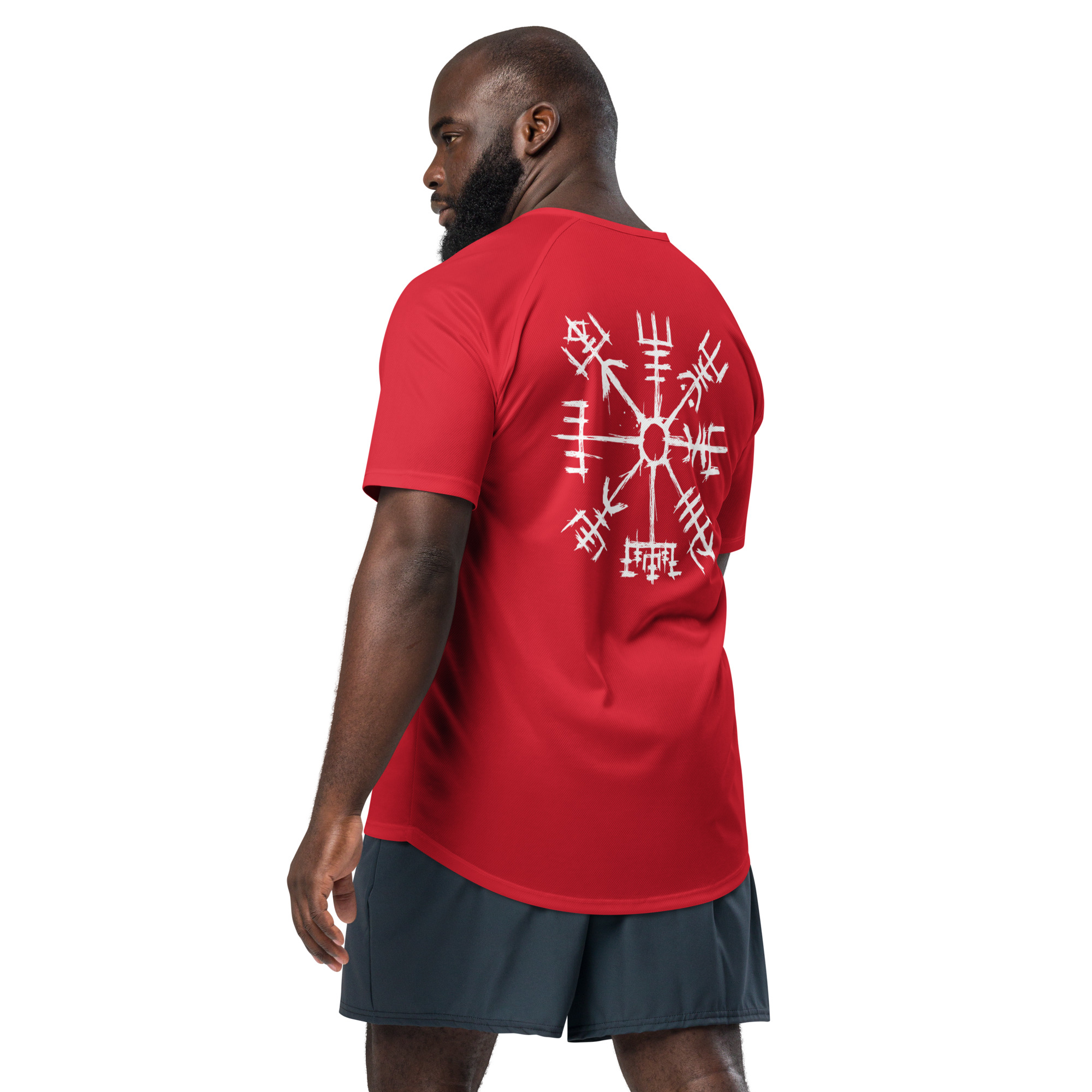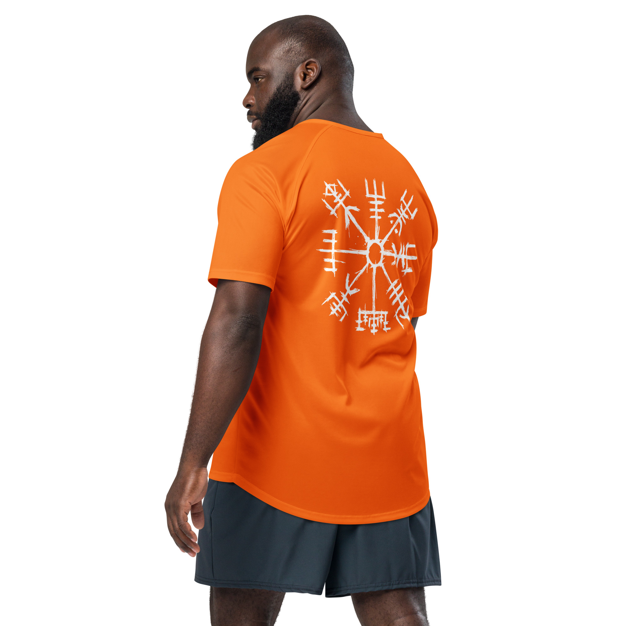 Lyft din träningsgarderob med Vegvisir Sports Jersey – en unisex tränings-t-shirt med Vonvilo-loggan framtill och den nordiska kompassen Vegvisir tryckt i stort format på ryggen. Denna sporttröja är tillverkad i 100 % ventilerande polyestermesh som ger maximal andningsförmåga under intensiva pass eller till vardags.